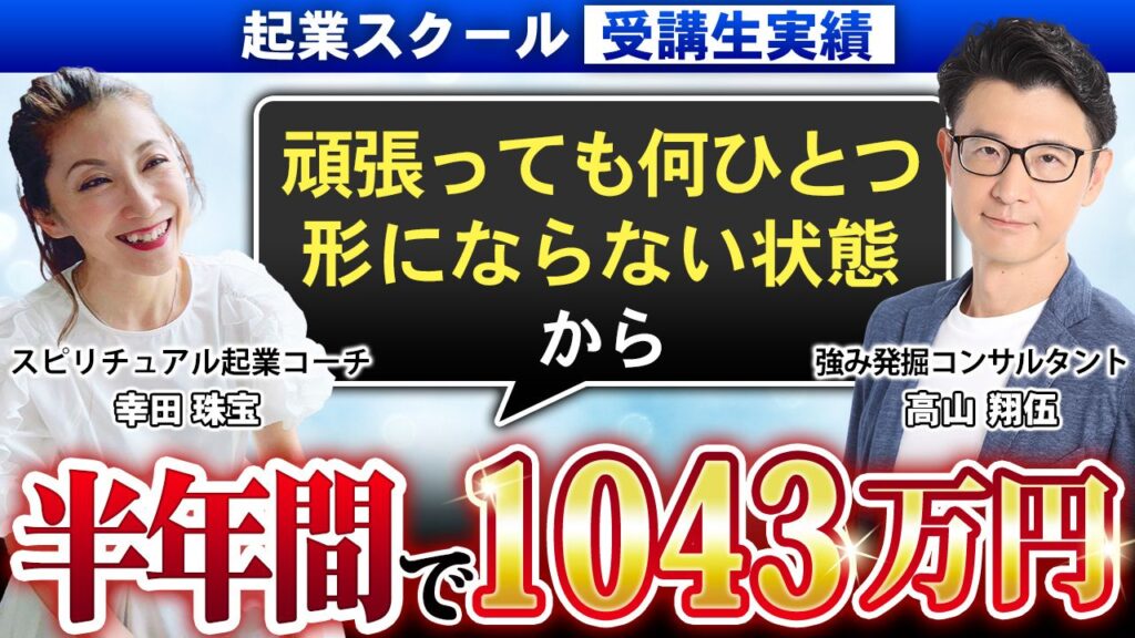 講座に参加して、わずか半年で目標にしていた1000万超えの1043万円の売上を達成できました。